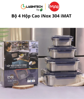 Bộ 4 Hộp Cao iNox 304 iMAT Dùng Được Vi Sóng, Đông Đá, Máy Rửa Chén, Lò Nướng