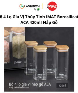 Bộ 4 Lọ Gia Vị Thủy Tinh iMAT Borosilicate ACA 420ml Nắp Gỗ