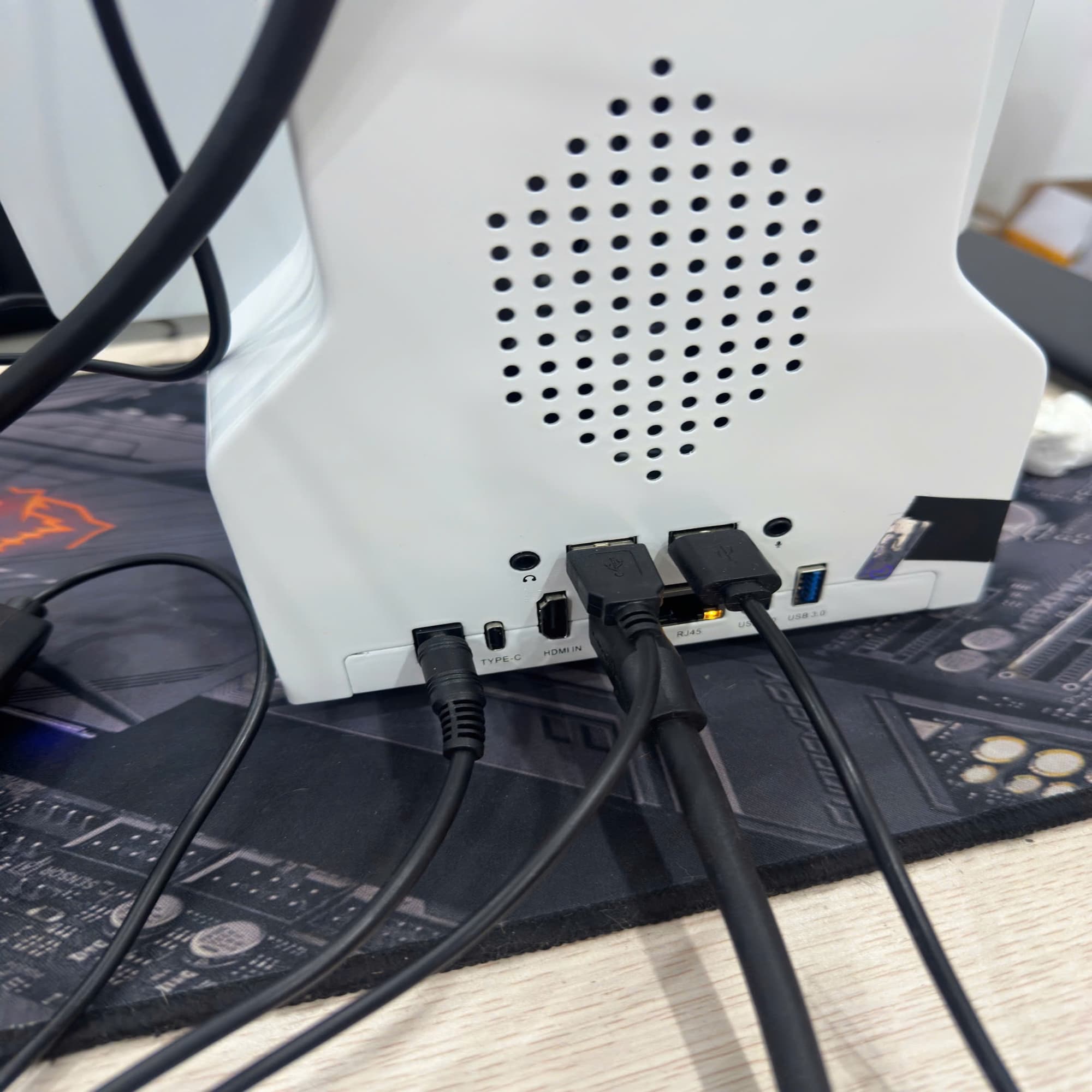 – Các nút bên và giao diện mở rộng: Kết nối tai nghe 3,5mm bên ngoài; Đầu vào Micro 3,5mm bên ngoài); Cổng USB; HDMI in; HDMI out; Cổng Ethernet (1000m))