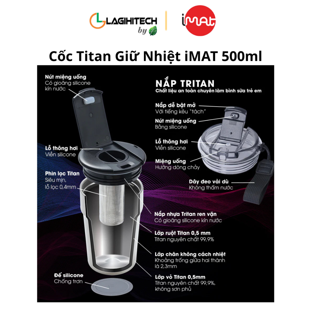 Cốc ủ nhiệt Titan iMat là lựa chọn lý tưởng cho người yêu trà và thảo dược, với chất liệu titan cao cấp giúp giữ trọn hương vị nguyên bản, an toàn cho sức khỏe khi sử dụng lâu dài.