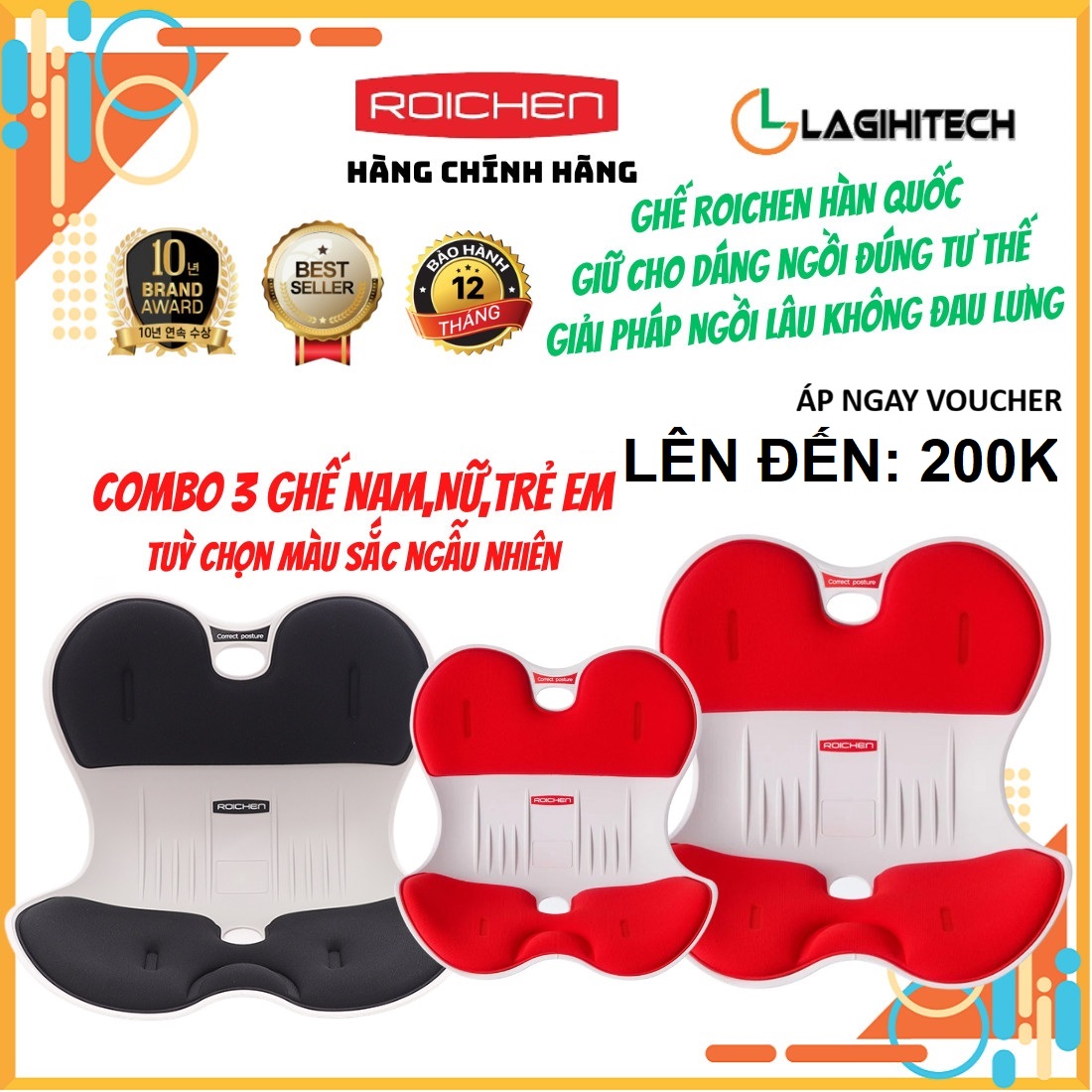 Ghế Chỉnh Dáng Ngồi Đúng Roichen Hàn Quốc (Combo 3 ghế nam nữ trẻ em) – Hàng Chính Hãng