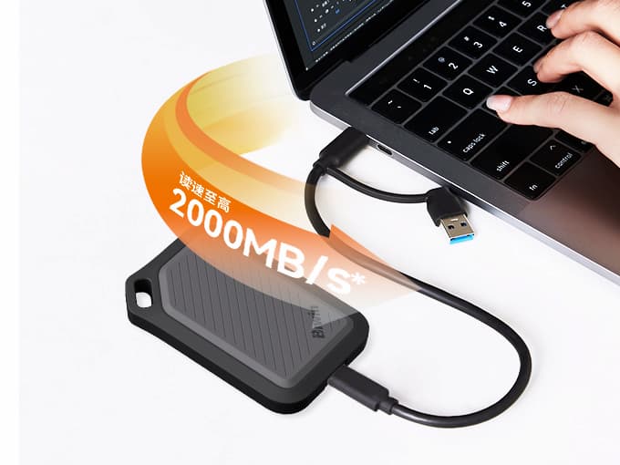 Điểm nổi bật nhất của Ổ cứng SSD di động BIWIN Amber PR2000 512GB chính là tốc độ đọc lên đến 2000MB/s nhờ chuẩn USB 3.2 Gen2x2. Điều này sẽ giúp người dùng sao chép file dung lượng lớn chỉ trong vài giây, truyền video 4K nhanh chóng hay chỉnh sửa video trực tiếp từ ổ ngoài.